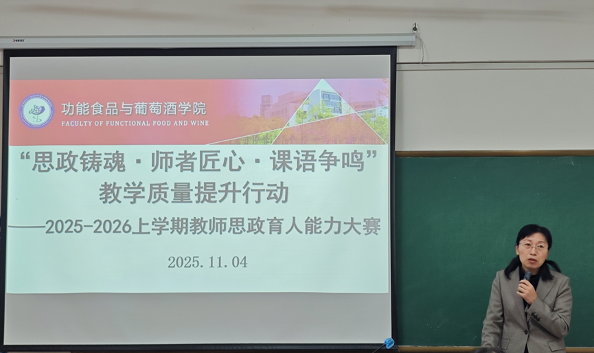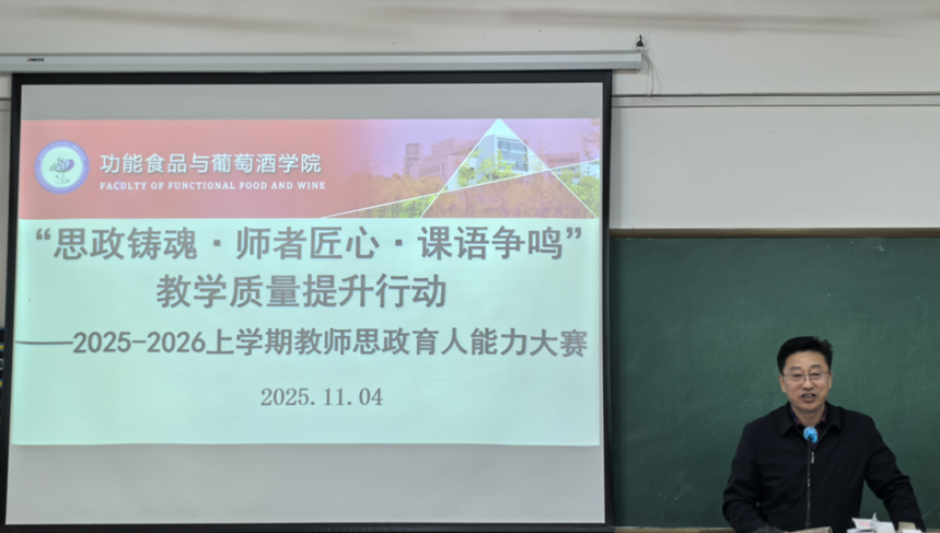 “为党育人、为国育才,党建是根、思政是魂、师德是本”—— 功能食品与葡萄酒学院始终以这一理念为准绳,全力提升教师队伍思想政治素质与教育教学能力。11月4日,学院成功举办“思政铸魂・师者匠心・课语争鸣”2025年度教师课程思政讲课大赛。教师发展中心主任李清教授、马克思主义学院副院长(主持工作)郭赞教授应邀担任评委并为大赛进行点评。大赛由学院副院长张晓书主持。