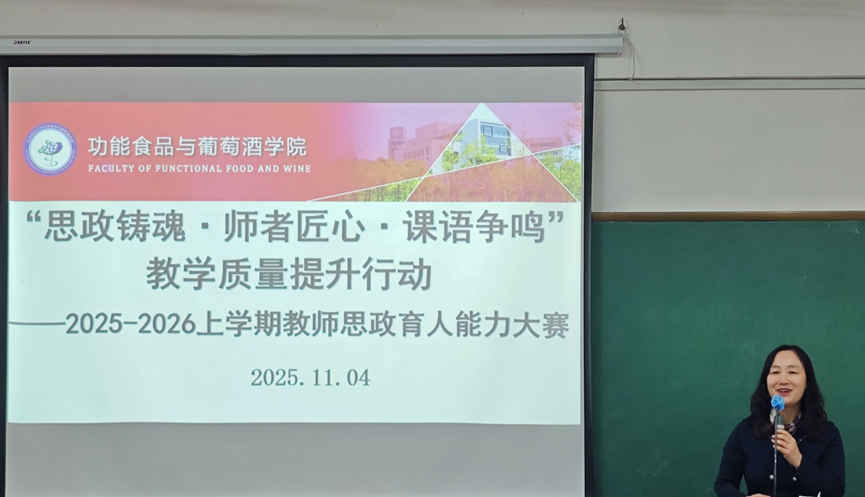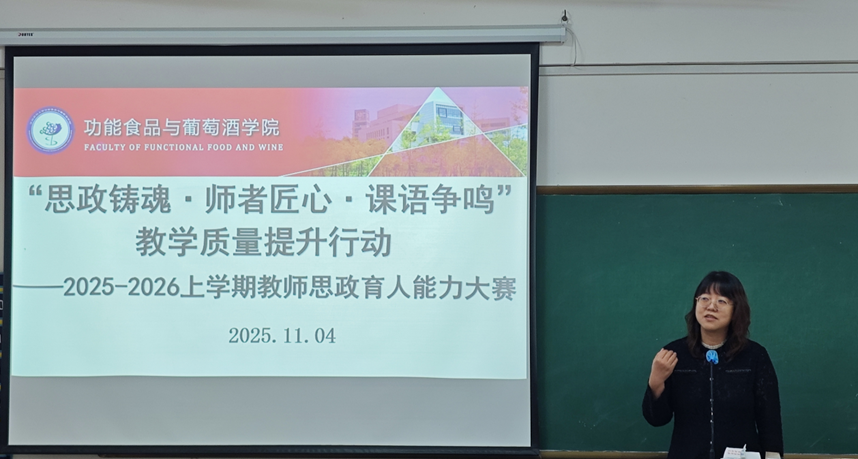本次“思政铸魂·师者匠心·课语争鸣”教师课程思政讲课大赛,是功能食品与葡萄酒学院落实“立德树人”根本任务的生动实践。学院将以此次大赛为契机,持续推进“党建引领、思政铸魂、匠心育人”的教学质量提升行动,力争让每一堂课都成为“知识传授的课堂、价值引领的阵地、能力培养的平台”,努力培养更多“懂专业、有担当、讲诚信、有情怀”的高素质人才。