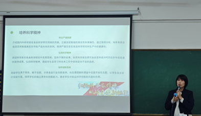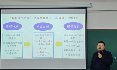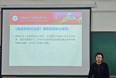 郭赞院长围绕“课程思政”建设指出,必须清晰区分“课程思政”与“思政课程”的概念差异,避免将二者混淆。她提出,课程思政的核心实施路径在于“融入”而非“植入”,教师应结合食品与葡萄酒领域的专业特点,以柔性滴灌的方式,将思政元素自然、巧妙地融入知识点讲解中。她指出,教师的课程设计要建立思维导图,需做好教学的闭环设计,要讲求“元素适配性”,避免“为思政而思政”。
