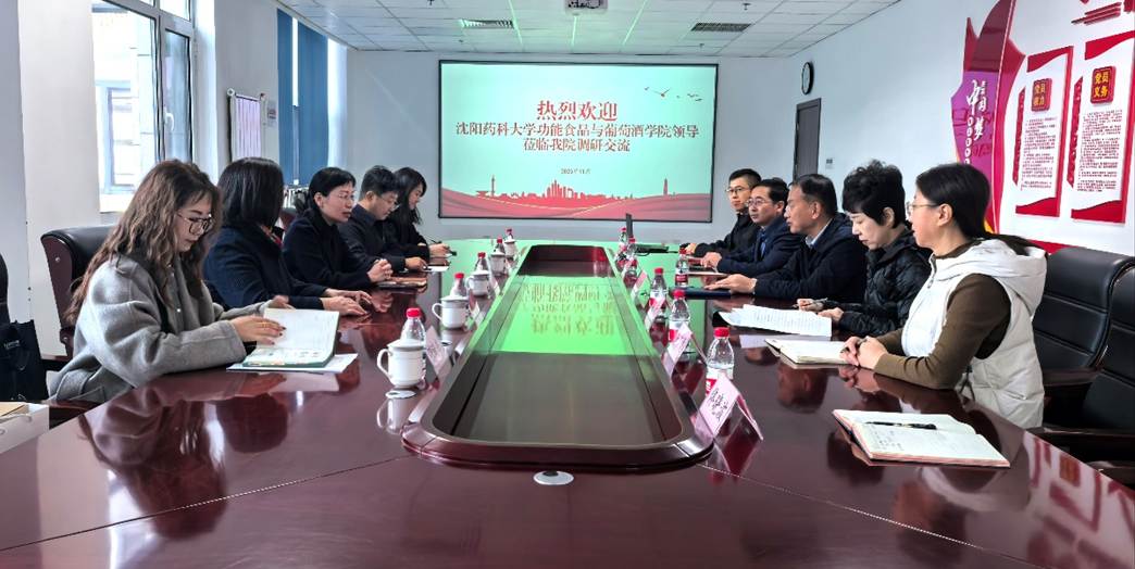 11月7日下午,功能食品与葡萄酒学院领导班子一行到辽宁省食品检验检测院进行调研,双方围绕院校科研合作、协同育人等事项开展深入交流。辽宁省检验检测认证中心副主任荣伟东及食检院领导班子成员出席会议。