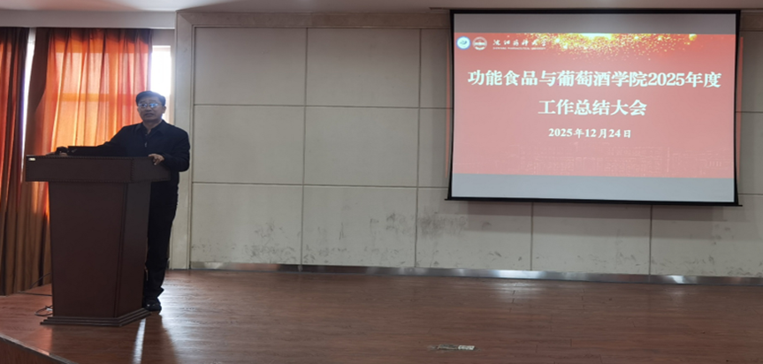 12月24日,功能食品与葡萄酒学院在学院602报告厅召开2025年度工作总结大会。学院领导班子成员及全体教职工参加会议。会议由院党委书记马金武主持。