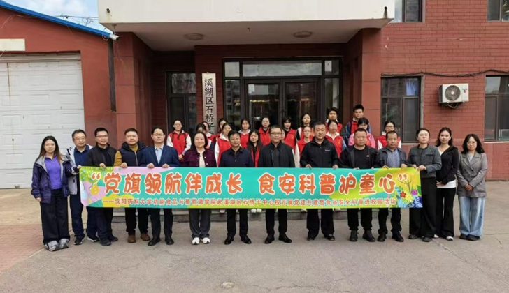 为深入学习贯彻习近平新时代中国特色社会主义思想和党的二十大精神,全面落实新时代党的建设总要求,深化党建引领与统一战线工作,推动校地融合走深走实,2026年4月17日,功能食品与葡萄酒学院党委赴本溪市石桥子中心校开展“党旗领航伴成长,食安科普护童心”党建共建暨食品安全科普进校园活动。学院领导、党员教师代表、民革、农工等民主党派教师代表及团委学生会学生骨干共同参与本次活动。